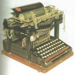 What Ben actually saw was a typewriter, probably a machine like the Remington 1886 model here (click on the images to see a larger version). Like most machines of the time, the keys struck upward against the paper. The machine also had four rows of keys: two rows of upper case letters and two rows of lower case letters.