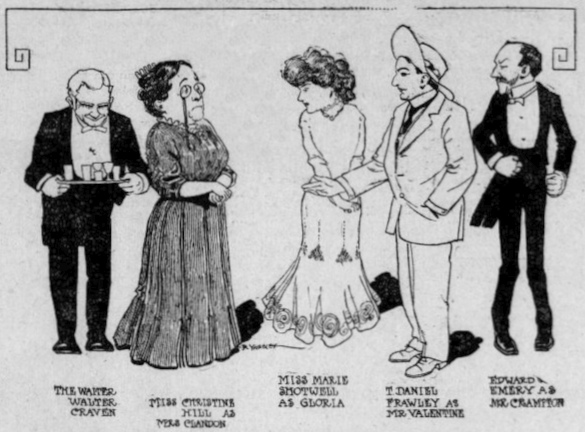 Caricatures of cast and characters in a 1907 production of You Never Can Tell