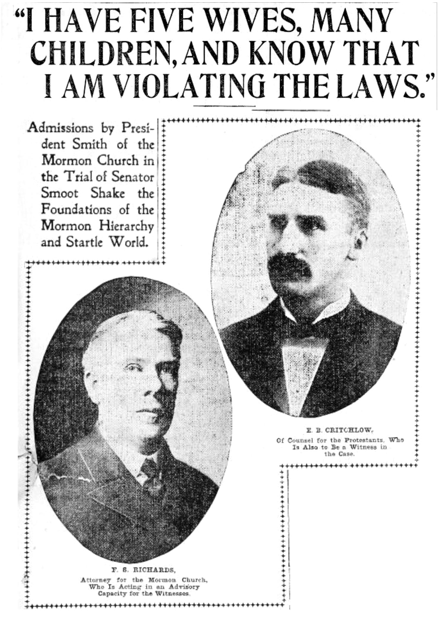 Read the testimonies of Mormon President Joseph F. Smith and Reed Smoot before the U.S. Senate
