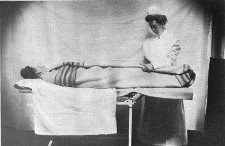 One of the hydrotherapy treatments Dr. Cordelia prescribed for Isabella was a wet sheet pack. The purpose of the wet sheet pack was to draw toxins from the body and increase blood circulation.