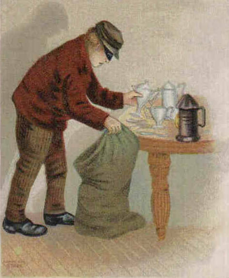 Every little while he bobbed his head out, and listened; all was still. However, this did not greatly encourage him; of course the burglars would know enough to work quietly now. Suddenly there was a sound outside.