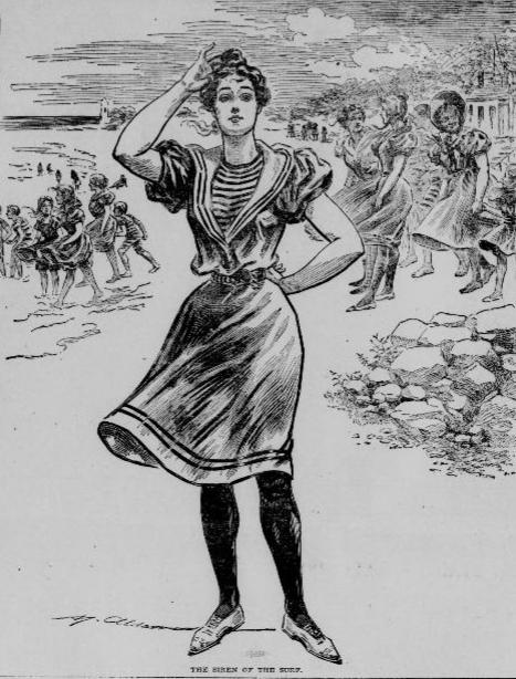 Gone were the heavy leggings; the new styles allowed ladies to bare their legs and lose their high-laced shoes. And the skirts were shorter; beneath them bloomers were replaced by fitted shorts that allowed women to move freely in the water.