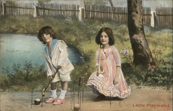 Croquet was a popular game in the summer when I was a child. My mother was very strict about diversions, but croquet was on her short list of desirable pastimes. She even played with us from time to time. This was in the 1930;s and 40’s. Later on, I bought a set for my children, but I don’t remember that they were very interested in the game.