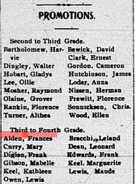 When Raymond Alden passed away in 1924, Frances’ name was not mentioned in his obituary as a surviving family member. The same was true when Isabella and Ross died; Frances’ name was not listed in their obituaries.