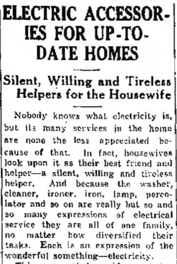 “Nobody knows what electricity is, but its many services in the home are none the less appreciated because of that.”