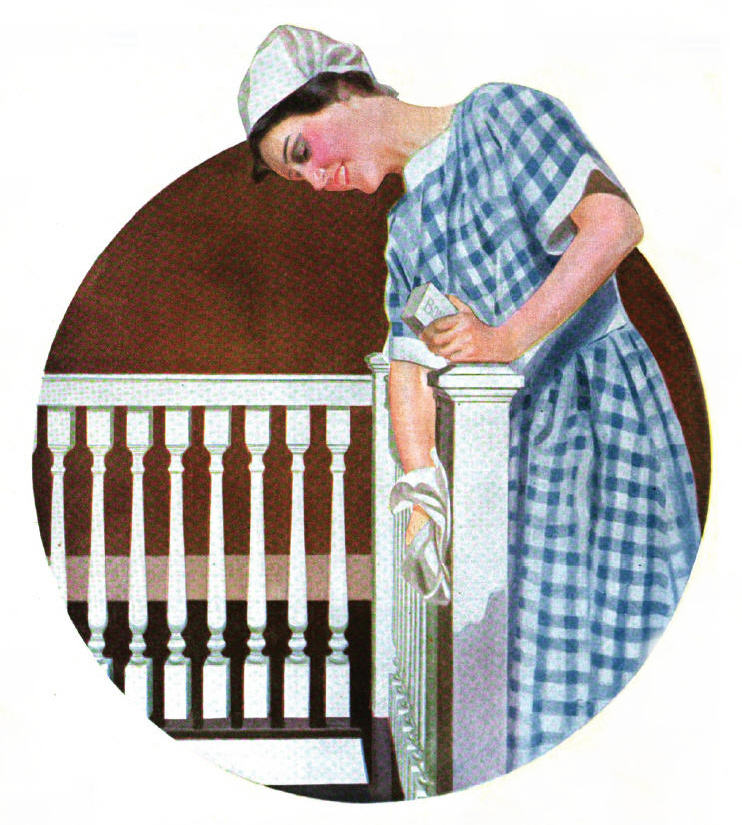 They scrubbed kitchen cupboards and drawers, and lined pantry shelves with newspaper. They whitewashed cabinets and walls, polished stoves, and scoured tiles.