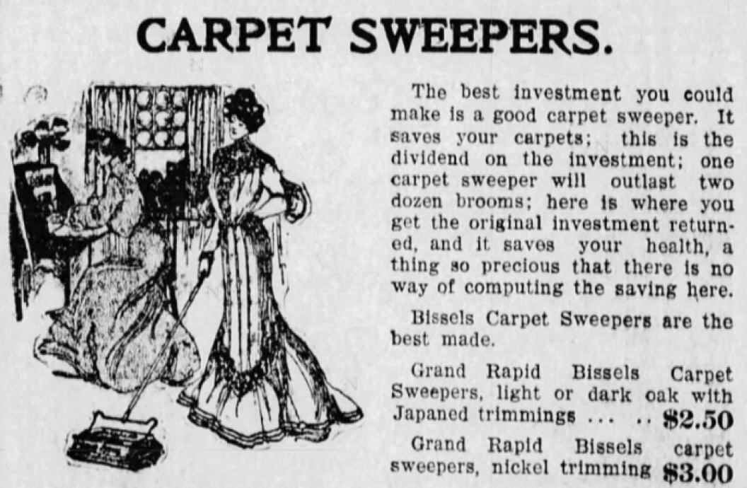 In the 1880s Bissell began selling carpet sweepers, which helped with daily cleaning of rugs and floors, but it wasn’t until about 1910, when more and more homes were wired for electricity, that Spring house cleaning became substantially easier for women.