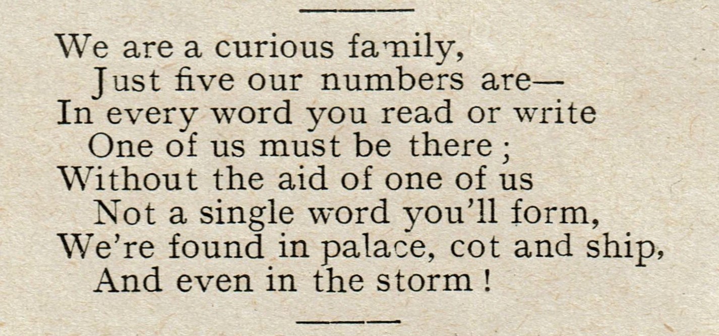 Newspapers and magazines published word games, and families often joined together to solve riddles like this: