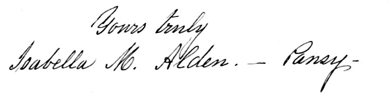 Isabella Alden was blessed with two striking talents: she was a gifted storyteller and a skillful teacher. She used those God-given talents to explain sometimes difficult Biblical truths in simple terms her readers could understand. In 1895 she wrote this short but effective letter to readers of The Pansy magazine about what it means to be intimate with Jesus: