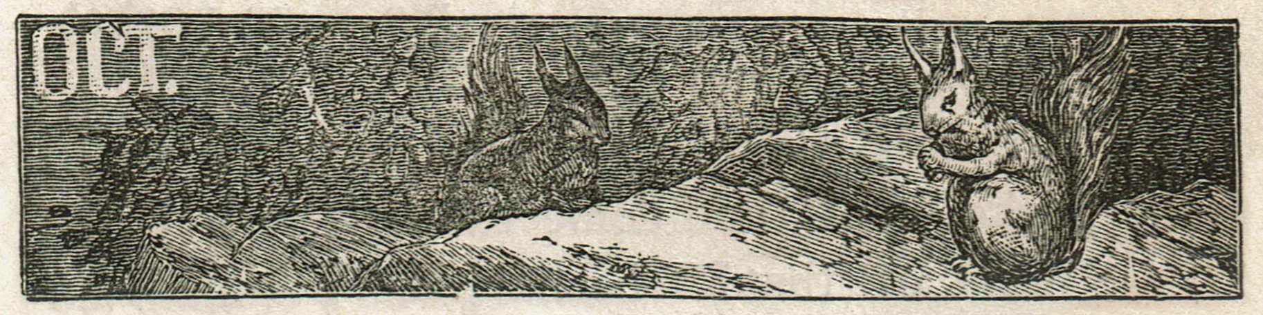 October gave a party— The leaves by hundreds came— The Chestnuts, Oaks, and Maples, And leaves of every name;