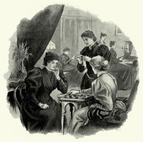 The blue paper curtains had given place to full white muslin ones, the bed was spread in white, as also was the little toilet table, and many little feminine graceful touches had softened its hard corners, and given it a look of home.
