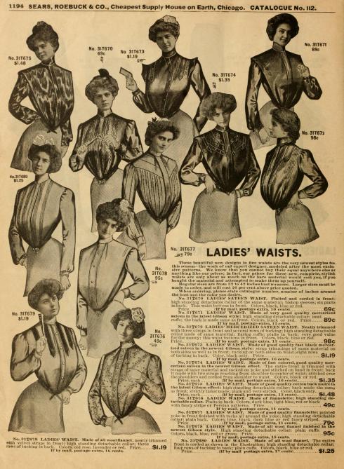 Shirtwaists were versatile and affordable. The Sears catalog of 1902 offered ladies’ shirtwaists starting at sixty-nine cents, which is equivalent to about $20.50 today.