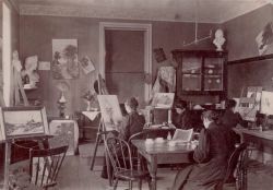 Away dashed the Greek maiden to one of the guest chambers which Laura had left in perfect order, dragged from a seldom used drawer the elegant white mull dress with its lace belongings, all of which saw the light only on state occasions, and rushed back to the hall room again, where she had left the print she was trying to copy. In her haste, she dragged out with the dress various articles of the toilet. Laura’s white kid gloves which she wore when she graduated, a quantity of laces, and a handkerchief or two, to say nothing of sprays of dried flowers. These she trailed over the carpet, seeing nothing of them. The important thing in life just now was to get herself into that dress.