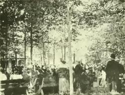 The Chautauqua Institution kept things running in a timely manner. Five minutes before the hour a bell rang, giving notice that the next event or class would begin promptly at the top of the hour. The sound of the bell usually resulted in a throng of people streaming out the door of one class in order to get to the next class on time. Bells marked the hour until 10:00 p.m. when the last night bell rang signaling quiet.