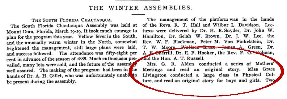And when she wasn’t teaching at the college, she taught physical culture classes at the Florida Chautauqua.