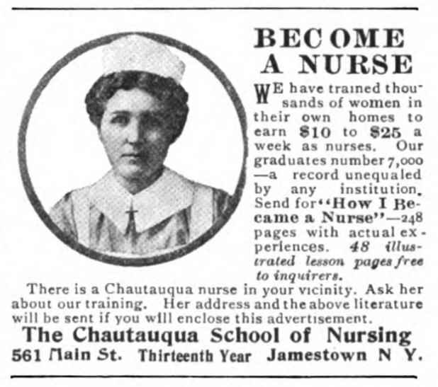 A New Yorker named Cyrus Jones decided to do something about it. Because he lived very close to Chautauqua Institution, he was familiar with the Chautauqua Literary and Scientific Circle. The CLSC conducted first-class four-year college degree courses via correspondence. He was certain nurses could be trained using the same methods. He said: