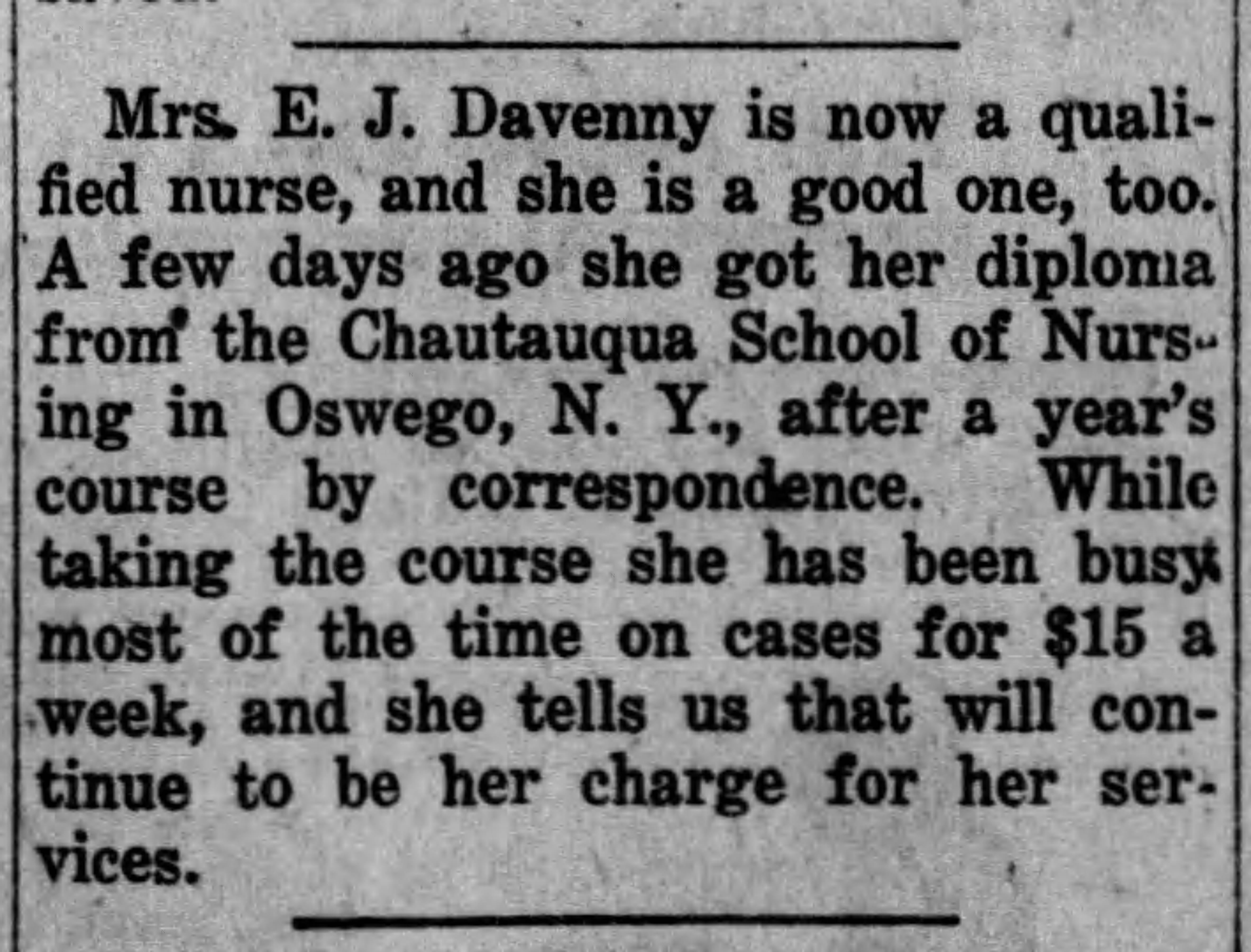 In all respects, the school was a success. Because of the Chautauqua School of Nursing, hundreds of communities had a trained, reliable nurse for the first time . . .