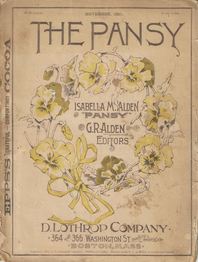 In typical Pansy fashion, Isabella probably got right to work in her new community, serving the members of her husband’s congregation, writing stories intended to win souls for Christ, and speaking out on matters of importance to women.