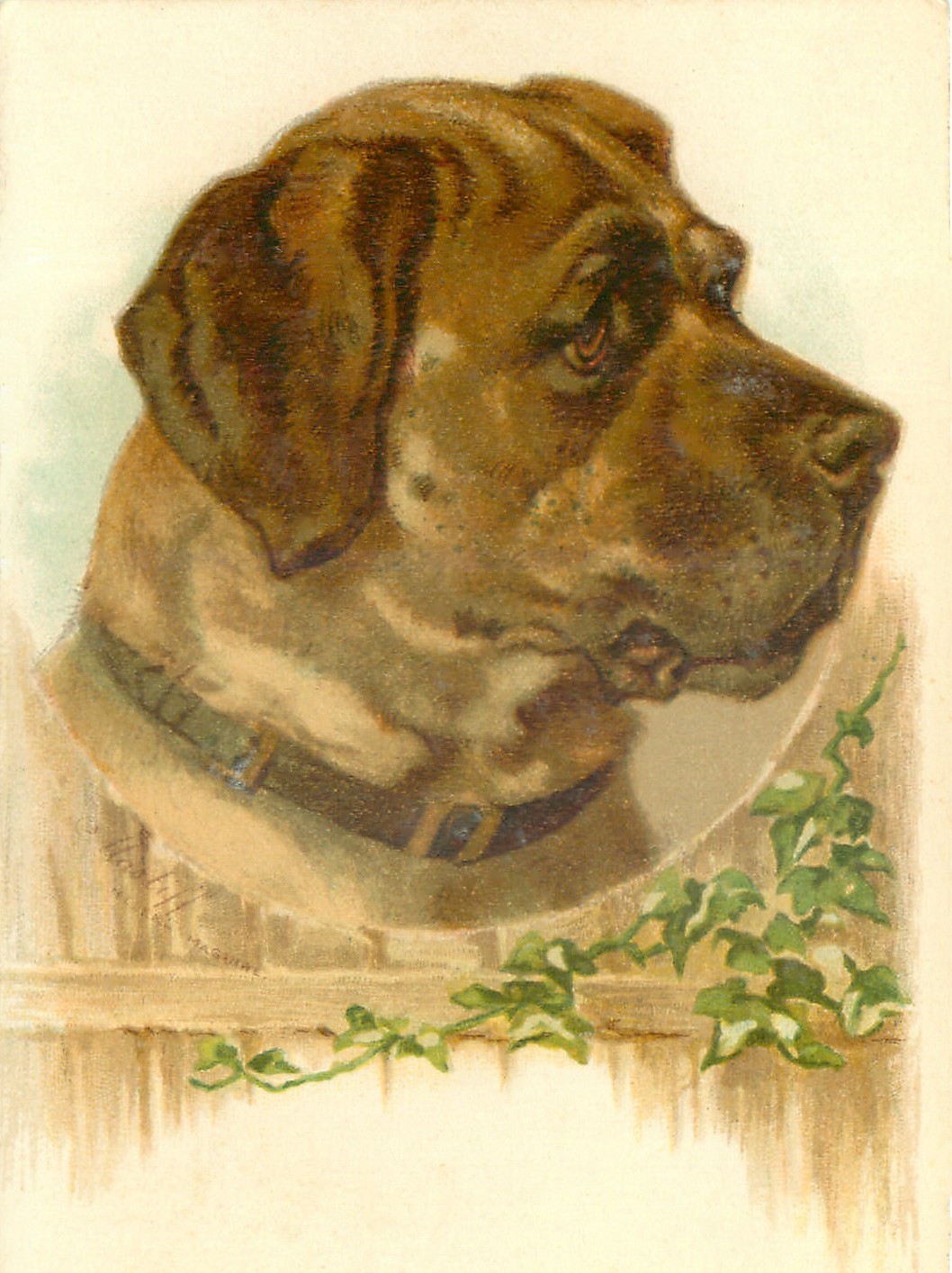 A trade card from about 1900. Any guesses what this dog’s breed is supposed to be?