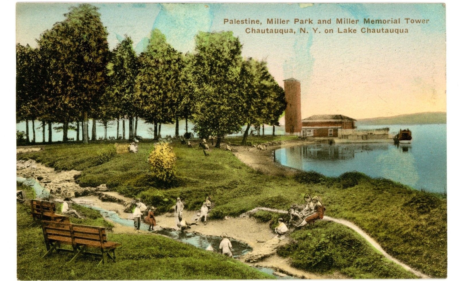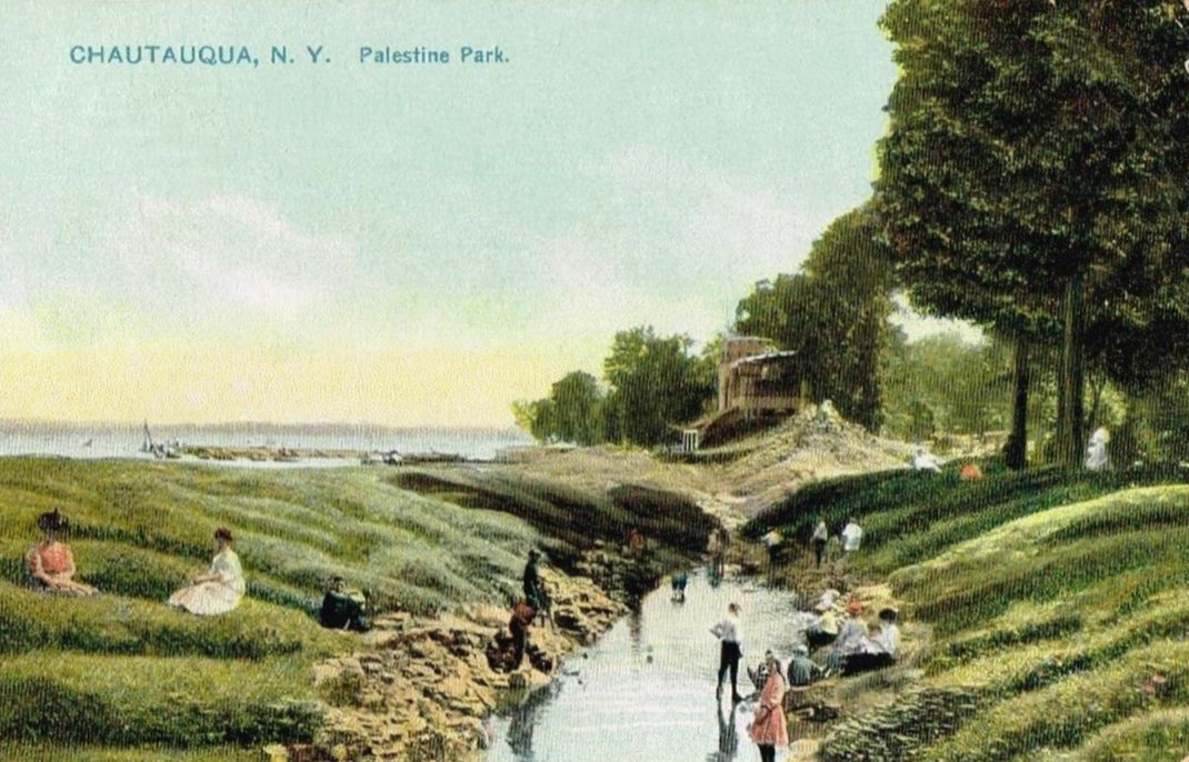 Click on the map below to see where Palestine Park was located on the Chautauqua Institution grounds. You’ll find it on the shore of Lake Chautauqua near the steamboat landing at The Point.