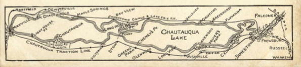 When Eurie, Marion, Ruth and Flossy embarked on their journey to Chautauqua in August, 1875 they traveled by railroad to Mayville. From there they took a steamer to Chautauqua. The map below shows the towns that lined Chautauqua Lake in 1906 (several years after the girls first journeyed there). You can see Mayville on the far left side of the map (click on the map to see a larger version).