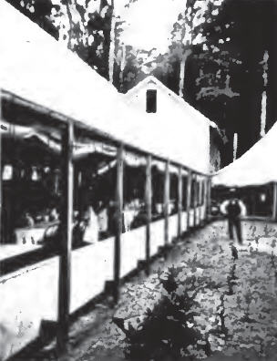 If you were not lucky enough to have a kitchen of your own in which to prepare your meals, you had to eat in the dining-hall, which was a long, open-air building furnished with rough, unpainted tables and benches.