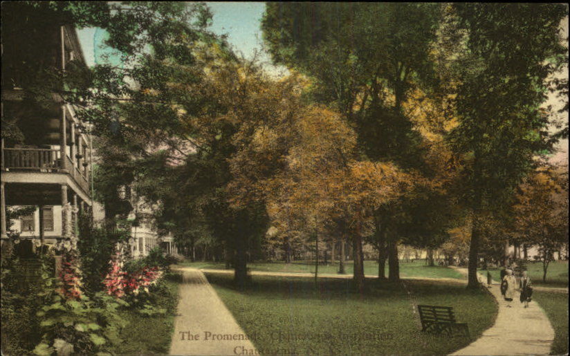 When the Four Mothers returned to Chautauqua with their children and grandchildren, they stayed at a hotel that sounded very much like The Athenaeum. Isabella Alden set many scenes on the hotel’s upper and lower verandas and her characters made great use of the lush lawns that led from the hotel down to the lake.