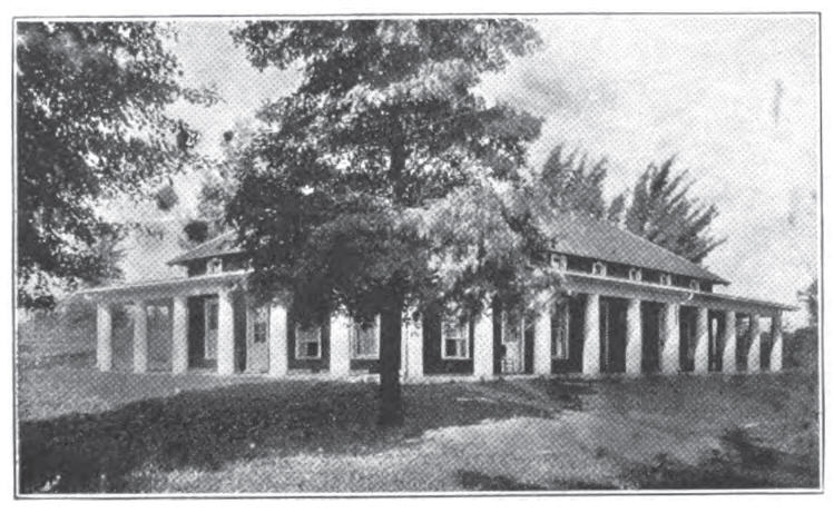 This photo from 1913 shows the busy Post Office. The number of people strolling through the plaza hints that it may have been a convenient thoroughfare for going from building to building on the grounds.