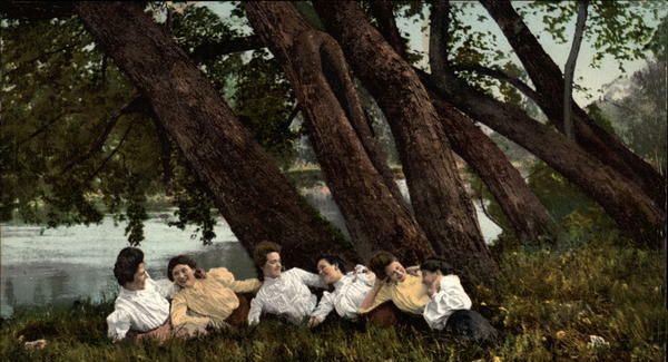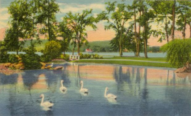 “None of all … who spent the day within the shadow of that sweet and leafy place have surely forgotten how the quaint and quiet beauty of the place and its surrounding fell upon them; they know just how the birds sang among those tall old trees; they know just how still and blue and clear the lake looked as they caught glimpses of it through the quivering green of myriad leaves …”
