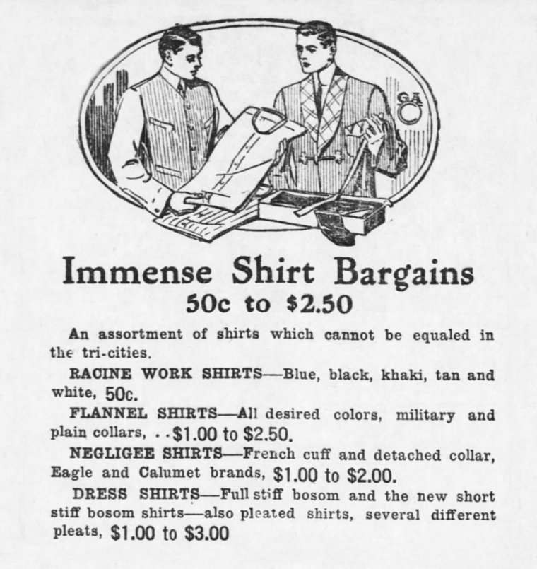 For Alfred, Julia might have purchased a new shirt to wear to his job as a store clerk (or even two shirts at these prices):