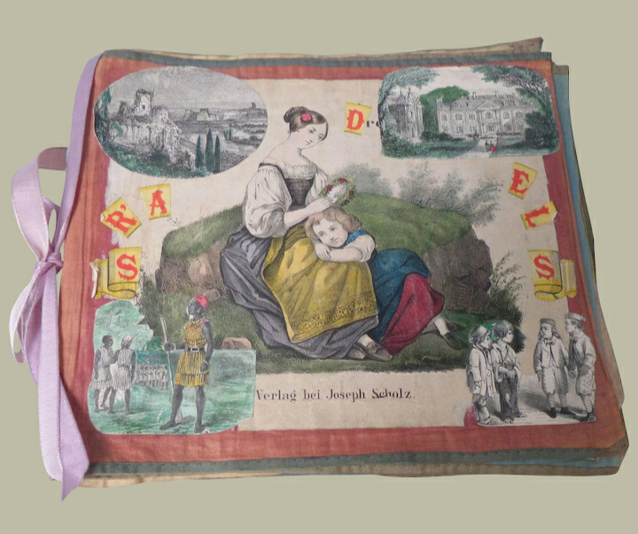 A cloth scrapbook from the 1860s (from RubyLane.com).