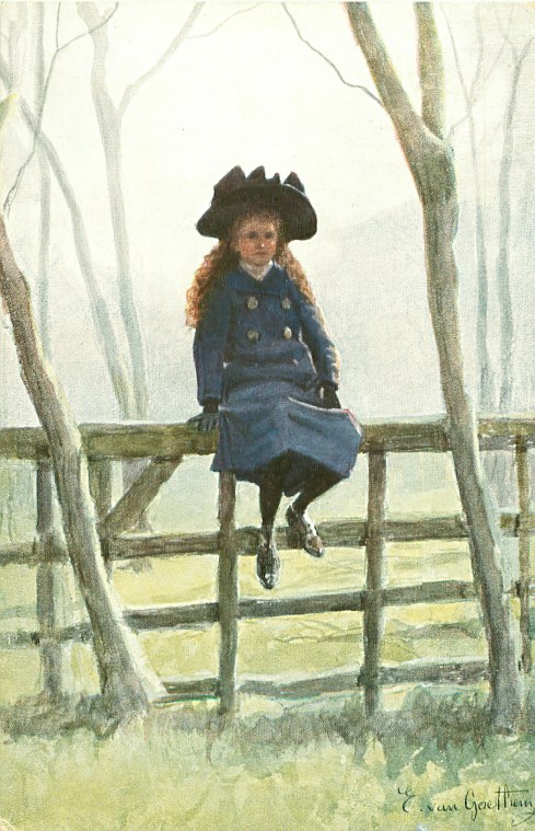 Yet for all that, there is something about the forlorn little girl sitting curled up on the settle that reminds me of myself. Perhaps it is the position—one foot under her, the other resting on nothing, the hands clasped drearily in her lap, the whole attitude one of deep dejection—which recalls a summer morning of long ago so vividly.