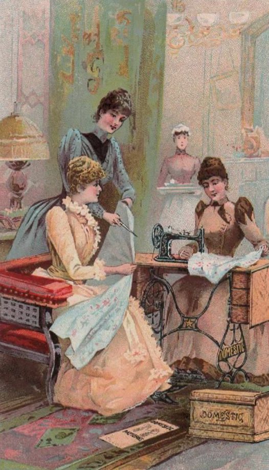 An 1890 painting by Fritz von Uhde shows a dressmaker using an older “turtle back” sewing machine (so named because of the machine’s shape).