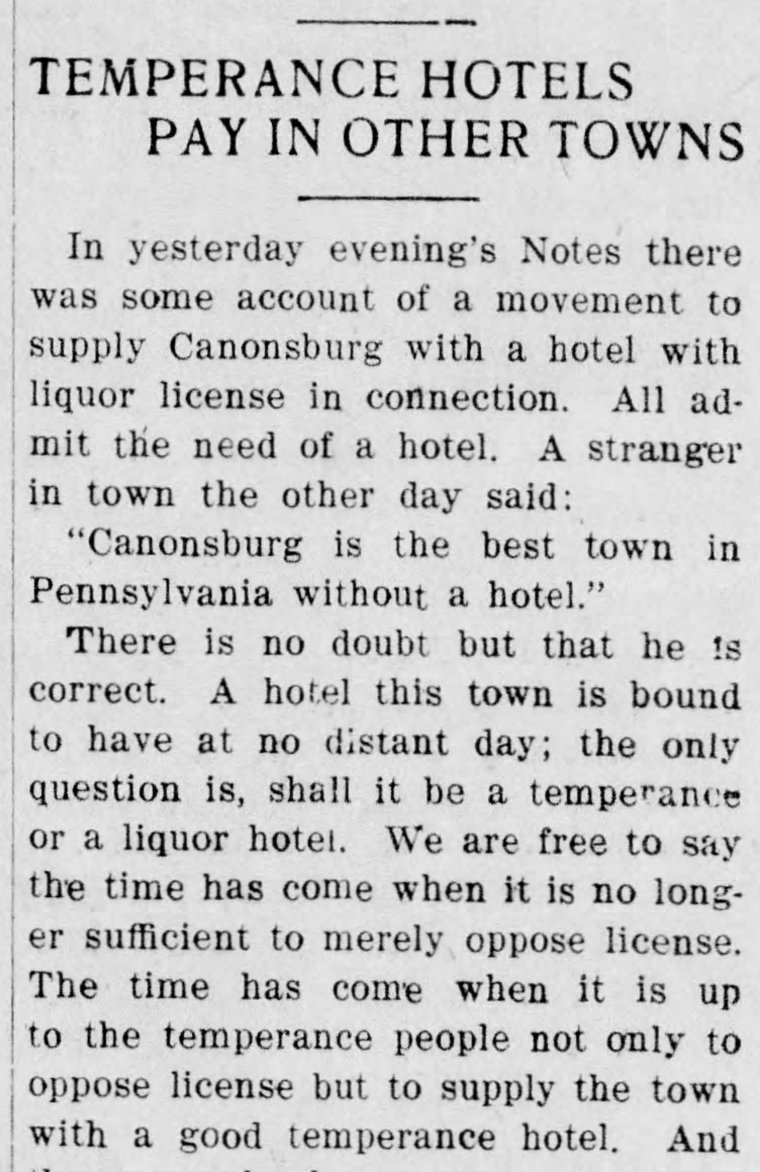 By the turn of the century the idea of first-class temperance hotels began to catch on in America. Some communities, like the seaside resort town of Asbury Park, New Jersey, openly invited temperance hotels to open in their town.