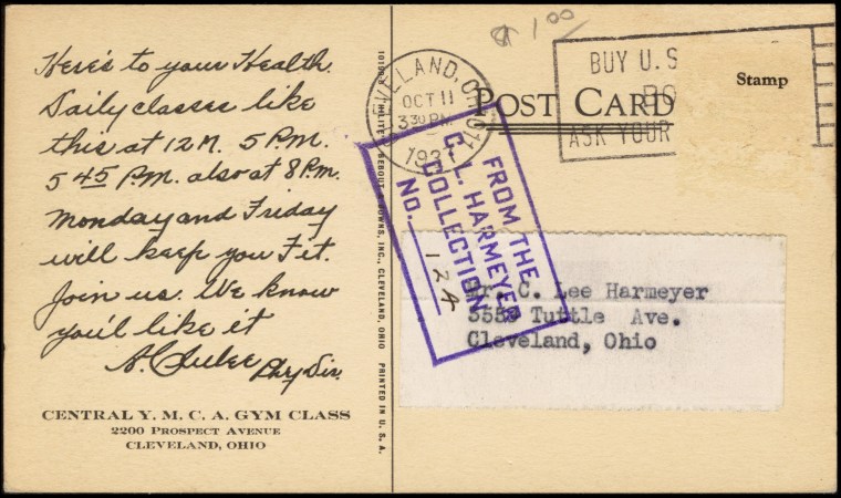 YMCAs often reached out to young men, encouraging them to join and take advantage of the Y’s programs. This is a postcard the YMCA in Cleveland Ohio used in 1910:
